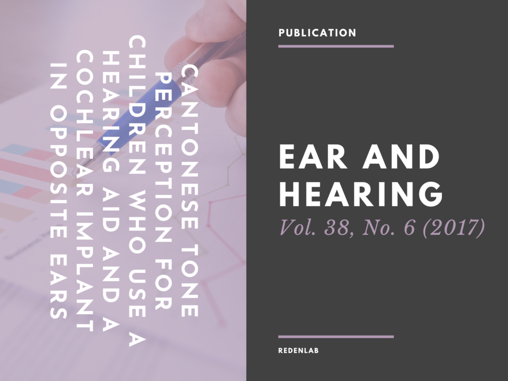 Objectives: The ability to recognize tones is vital for speech perception in tonal languages. Cantonese has six tones, which are differentiated almost exclusively by pitch cues (tones 1 to 6). The differences in pitch contours among the tones are subtle, making Cantonese a challenging language for cochlear implant users. The addition of a hearing aid has been shown to improve speech perception in nontonal languages and in Mandarin Chinese. This study (1) investigates the Cantonese tone perception ability of children who use a cochlear implant and a hearing aid in opposite ears; (2) evaluates the effect of varying pitch height and pitch contour cues on Cantonese tone perception for these children; and (3) compares the Cantonese tone perception ability for using a hearing aid and a cochlear implant together versus an implant alone.